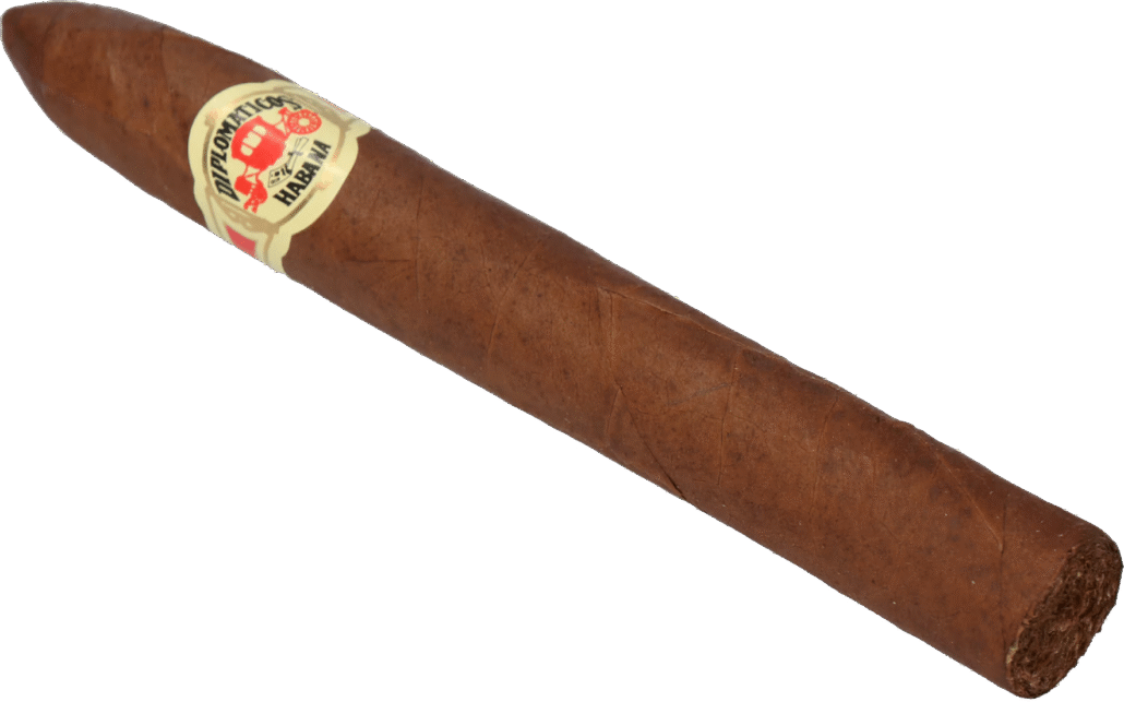 The sepia tone of the band, the yellow-and-red livery on the boxes, and that quaint old carriage are designed to give an impression of age. Given the history of Cohiba and Trinidad cigars (both formed after the Revolution, but neither made publicly available until long after Diplomáticos) both being given as diplomatic gifts to official visitors to Castro’s government, one would be forgiven for the assumption that Diplomáticos cigars were intended for the same purpose many years before. The reality is quite different. The original release was with the intention to offer a more accessibly-priced alternative to Montecristo, who had rapidly risen to the status of high luxury just 30 short years after being founded. The blend is medium-to-full strength, like the classic Montecristo line. The initial size offerings copied Montecristo exactly – numbered 1 through 5 – and each cigar was, and is, hand-rolled with Tripa Larga (long-filler tobacco) from the Vuelta Abajo. The manufacture was even done in the same factory.